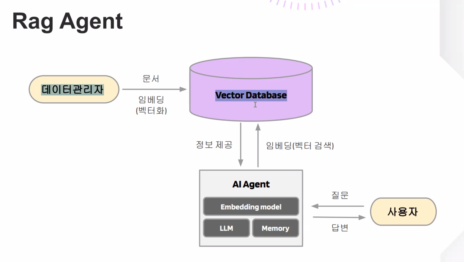 - 사용자가 질문하면 AI Agent가 Supabase에서 관련 문서를 자동 검색
