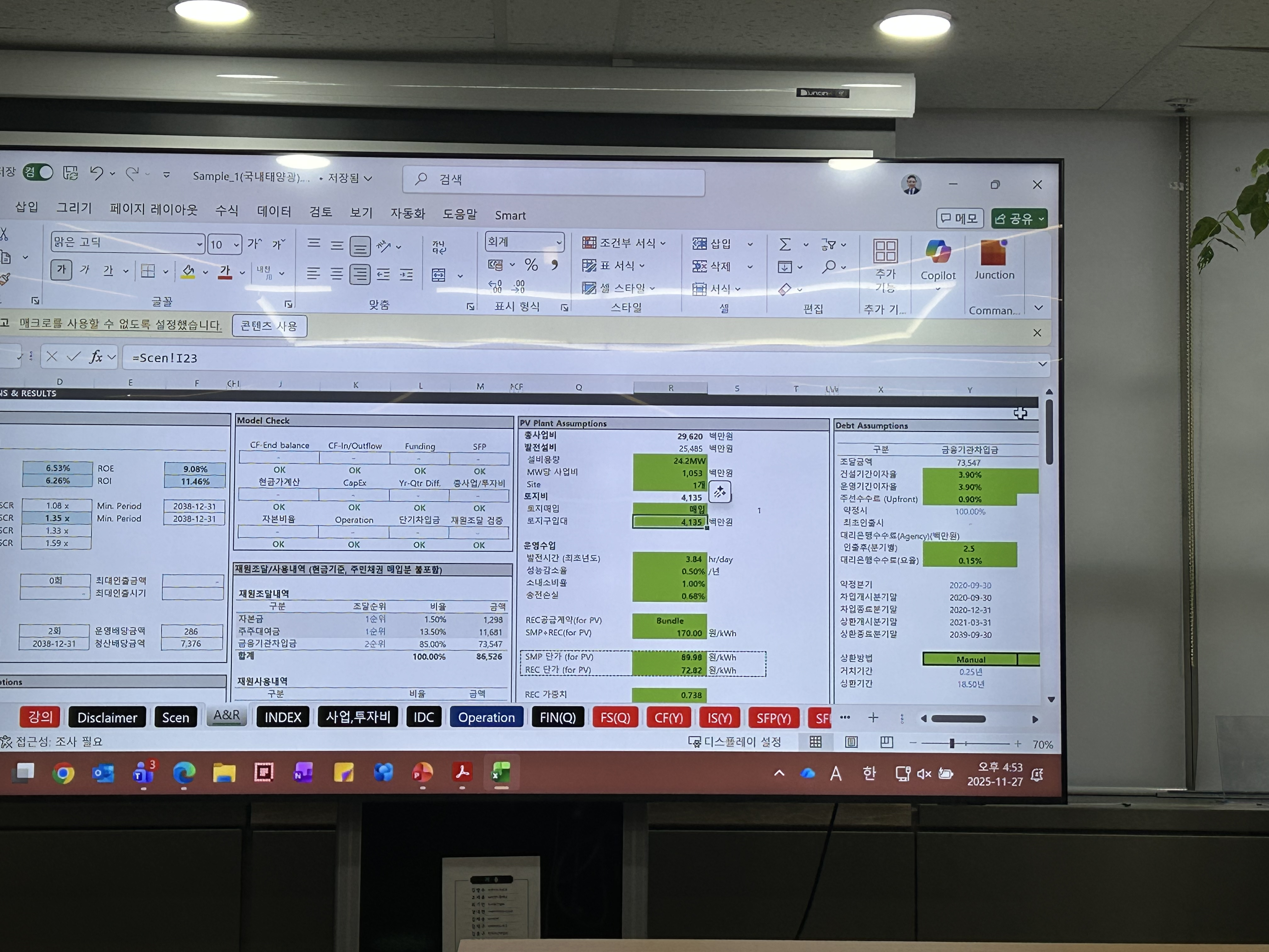 - 재무모델의 복잡성: 다양한 금융 및 운영 조건을 구현해야 하므로 모델이 복잡하며, VBA(매크로)를 활용한 자동화 분석이 요구된다.